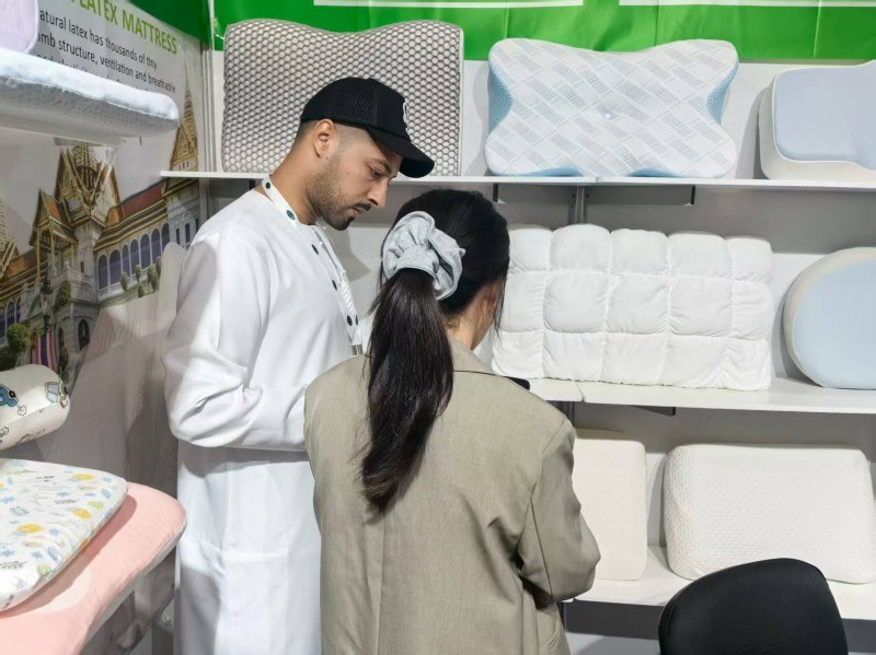 Sellel Dubai unenäitusel on meil au näidata oma unele keskendunud patju külastajatele üle kogu maailma. Oleme pühendunud kahe enimmüüdud patja turule esitlemisele:naturaalsest lateksist padija kaasaegne nutikas materjalmäluvahust padi. Lateksi kiire tagasilöögi ja allergiavastased omadused on lateksihuviliste seas väga eelistatud. Samal ajal võib mäluvahu ülim sobivus pakkuda sügavat und. Meie põhjalik suhtlus klientidega kohapeal pani meid tundma nende patjade tagaajamist. Usume kindlalt, et erinevate uneharjumuste jaoks isikupärastatud valikute pakkumine on kvaliteetse une võti.